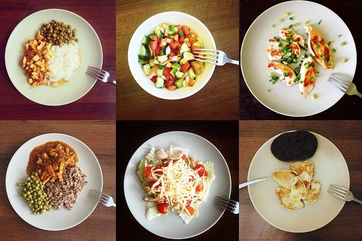 повторяем меню понедельника, меняя овощи и добавляя разнообразие в салаты, чтобы не наскучить.
