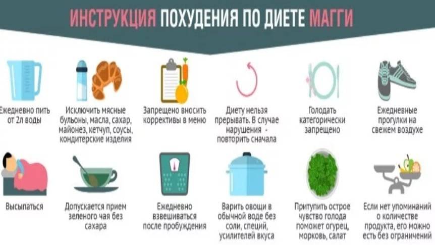 Диета Магги требует строго соблюдения таких правил: