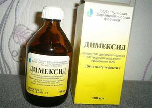 Предварительно, следуя своему природному занудству, предупреждаю: НИКОГДА НЕ ИСПОЛЬЗУЙТЕ ДИМЕКСИД НЕРАЗБАВЛЕННЫМ, получите ужасающие ожоги! Мне кажется наиболее верным будет не просто разбавлять его 1:2, а начать с меньшей дозы и понемногу ее увеличивать, чтобы избежать побочных эффектов. (С.З.)