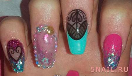 4. Обилие стразов и необычных украшений может не соответствовать повседневности имиджа. Следует делать такой дизайн к определенным поводам. В противном случае придется периодически прятать шикарный дизайн под неброские тона обычных лаков.