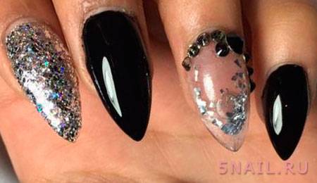 Данный маникюр подойдет девицам, которые выбирают среднюю длину ногтей. Включайте вашу фантазию и творите волшебство с помощью мерцающих блесток! Вы можете использовать крупные блестки (они наносятся на ноготь дотсом) или мелкие (используйте для его нанесения кисть), а также обсыпать разными блестками каждый ноготок.