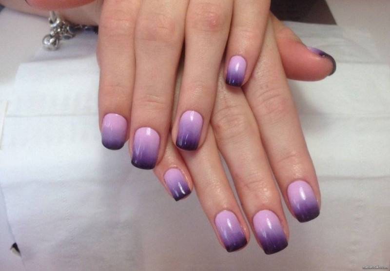- для коротких ногтей идеальны синий и голубой, фиолетовый и красный, зелёный и салатный, белый и серый оттенки. Именно эти переходы будут особенно удачны и подойдут практически к любой ситуации;