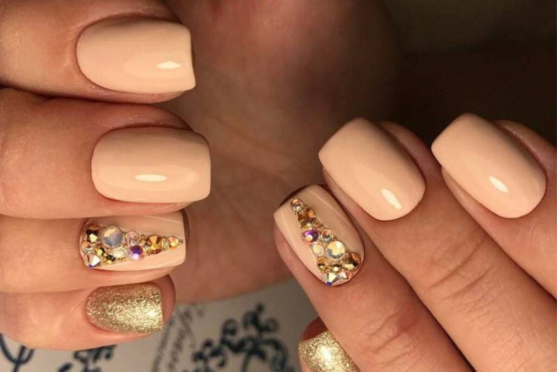 Стразами увлекаться не стоит, если ноготки короткие. Пара блестящих камушков будет смотреться достаточно гармонично и ненавязчиво.
