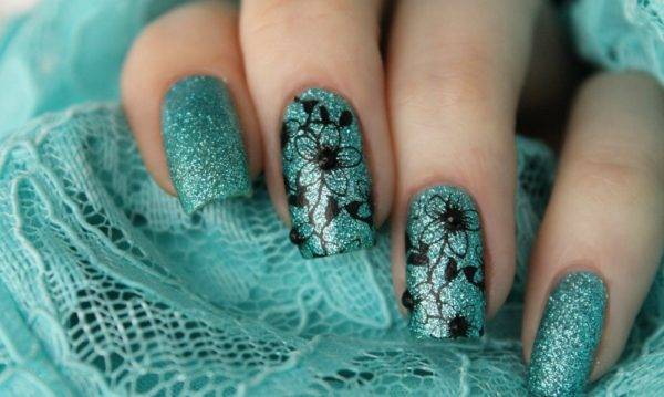 Пудра вам понадобится для создания красивейших трёхмерных композиций. Её можно выбирать в соответствии с цветом основного покрытия, а можно сделать контрастное сочетание цветов. Орнаменты с такой пудрой лучше делать на каком-то одном акцентном ноготке. Такой маникюр будет очень элегантным.