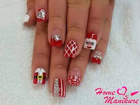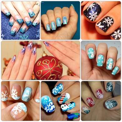 Новогодний маникюр – это много цвета, блеска и мерцания. Для тех. Кто воспринимает новогоднюю ночь как волшебную ночь, подойдет дизайн с нарисованными персонажами зимней сказки: дедом морозом, снегурочкой, снеговиком. Или просто нарисовать на голубом или синем фоне белые снежинки. Чтобы рисунки были более четкими, для их выполнения можно использовать цветной гель-лак, который наносится поверх биогеля.