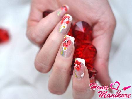 Одно из самых популярных дополнений к бесцветному маникюру. Его преимущество в том, что на коротких ногтях небольшие рисунки смотрятся очень гармонично, не нарушая концепции естественности и лаконичности.
