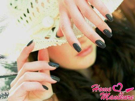 - Девушкам с длинными ноготками стоит отдать предпочтение ярким тонам лака. Подойдут любые оттенки, от ярко-алого до глубокого чёрного.
