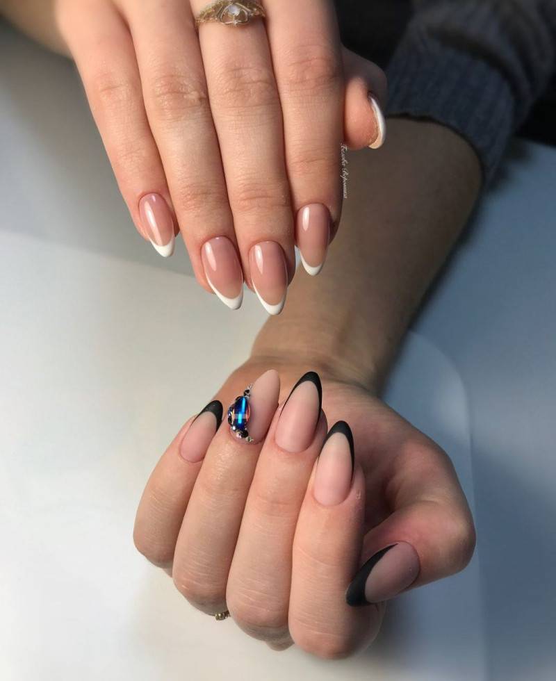 Некоторые барышни предпочитают черный френч, но нужно быть аккуратными: если неправильно рассчитать длину ногтя, отросшая часть будет выглядеть как траурная грязная каемка.