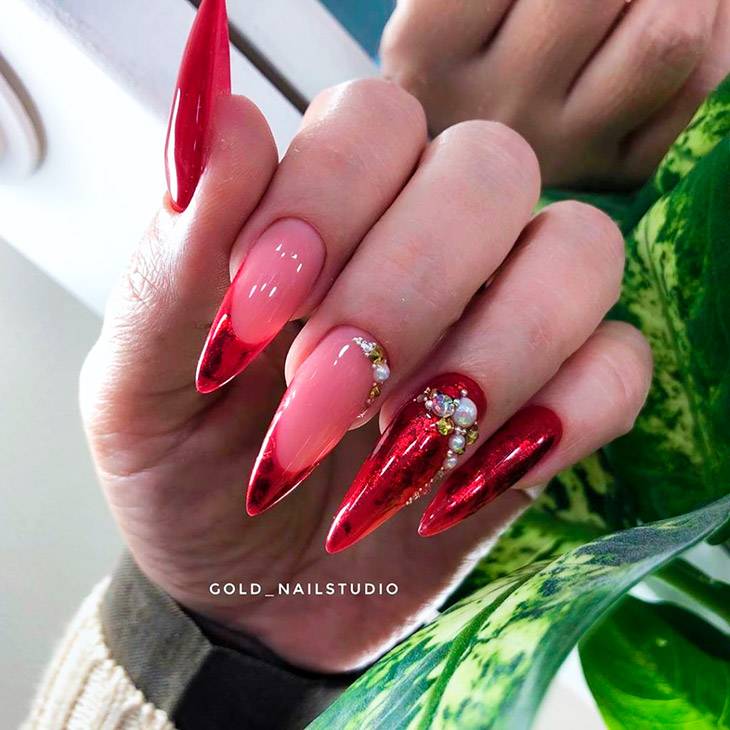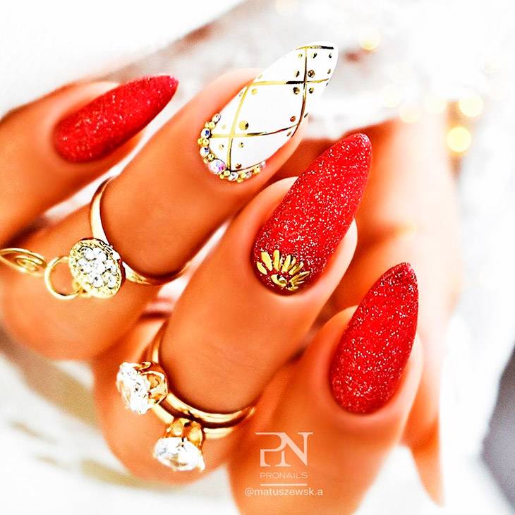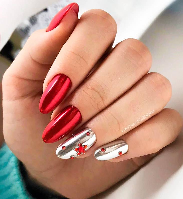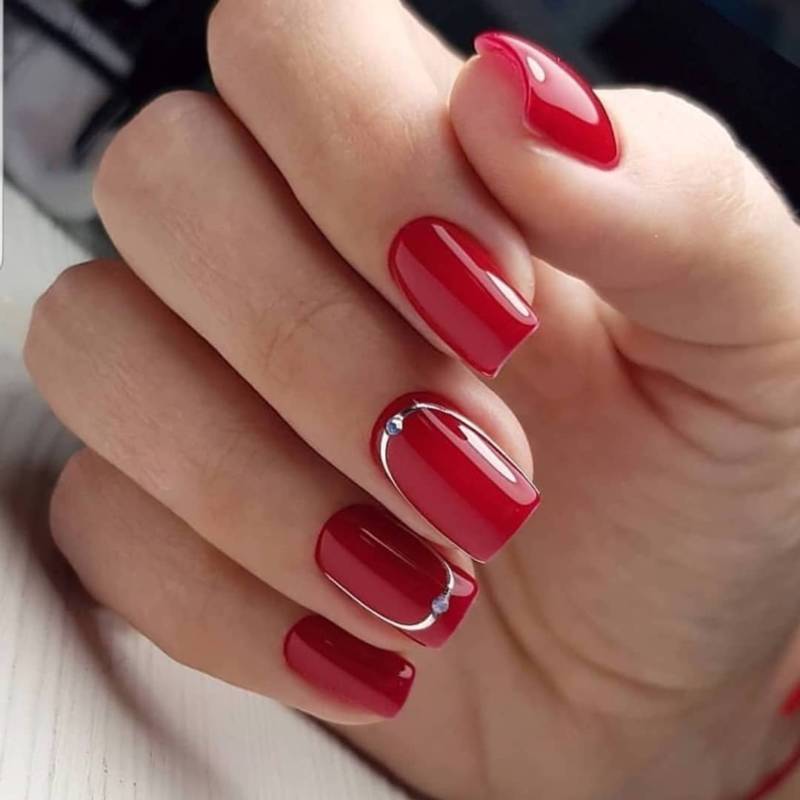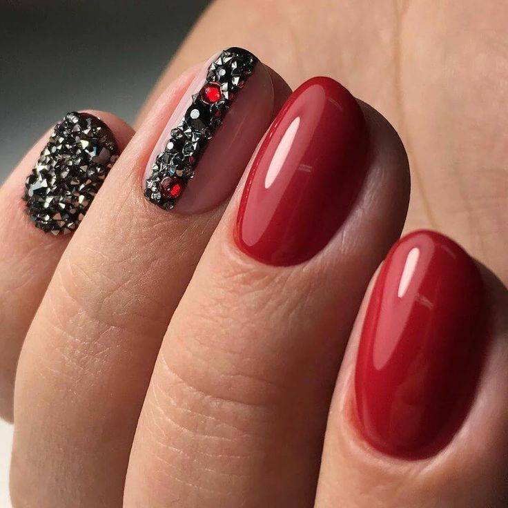 Ежедневно появляется множество трендов, которые нельзя упускать из вида. Блестками, стразы, фольгу лучше всего делать на ногтях, имеющих небольшую длину, так как красный является достаточно акцентным и дополнительный декор становится лишним.
