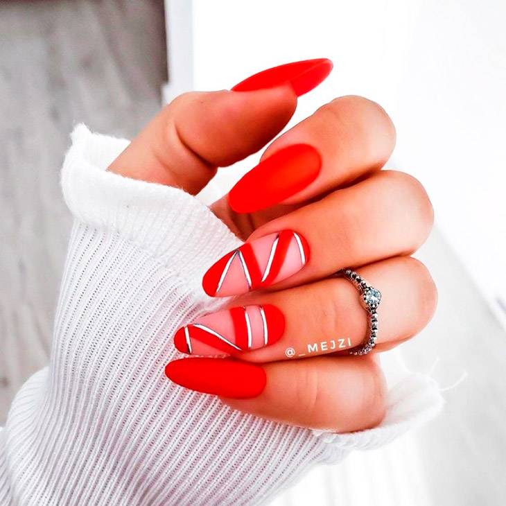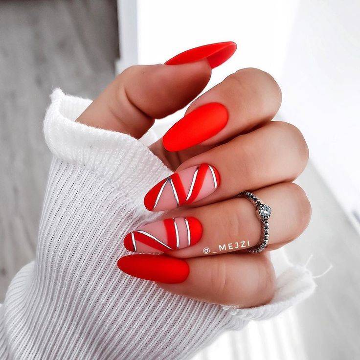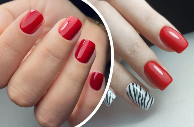 #3 Молодежный маникюр красного цвета с дизайном минимализм