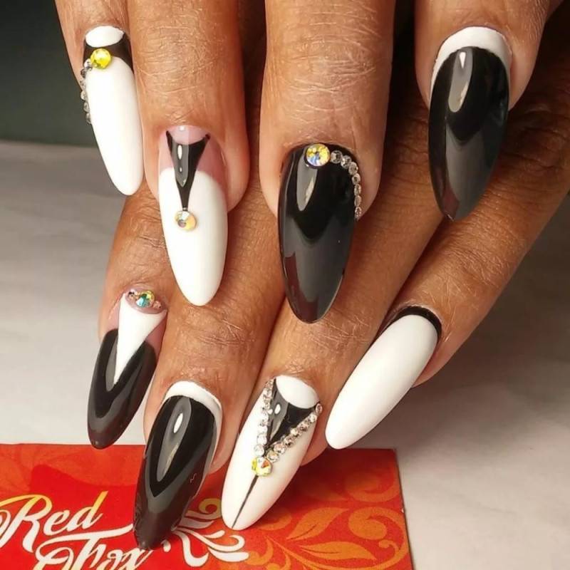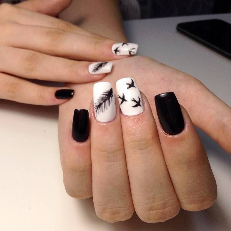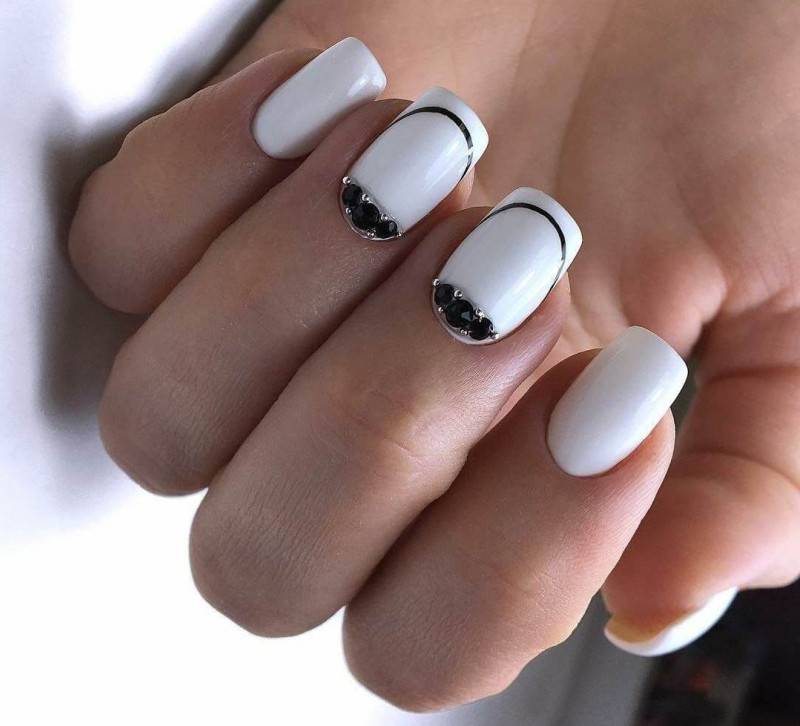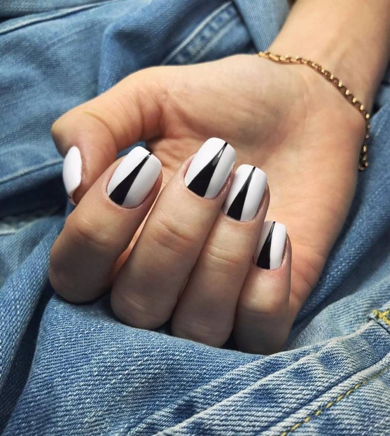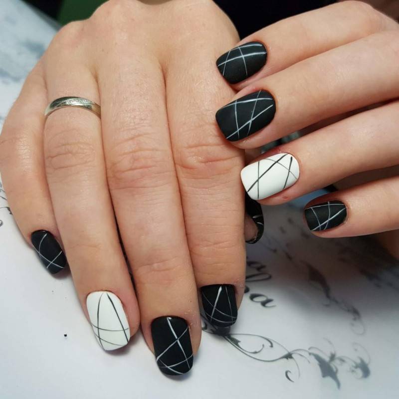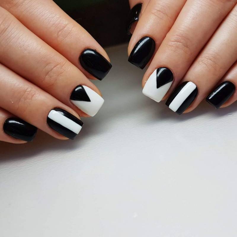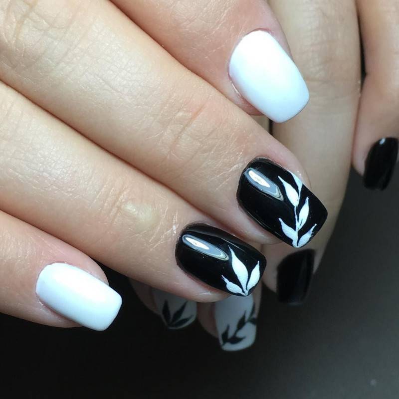 Вы также можете выбрать простой дизайн с великолепными деталями или ногти с инкрустацией, которые в настоящее время в тренде. Сочетание черного с белым на короткие ногти есть возможность выполнить в различных техниках, выделяя несколько ногтей.