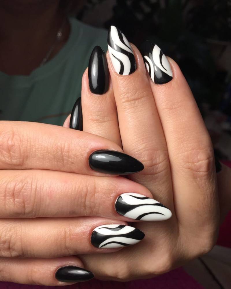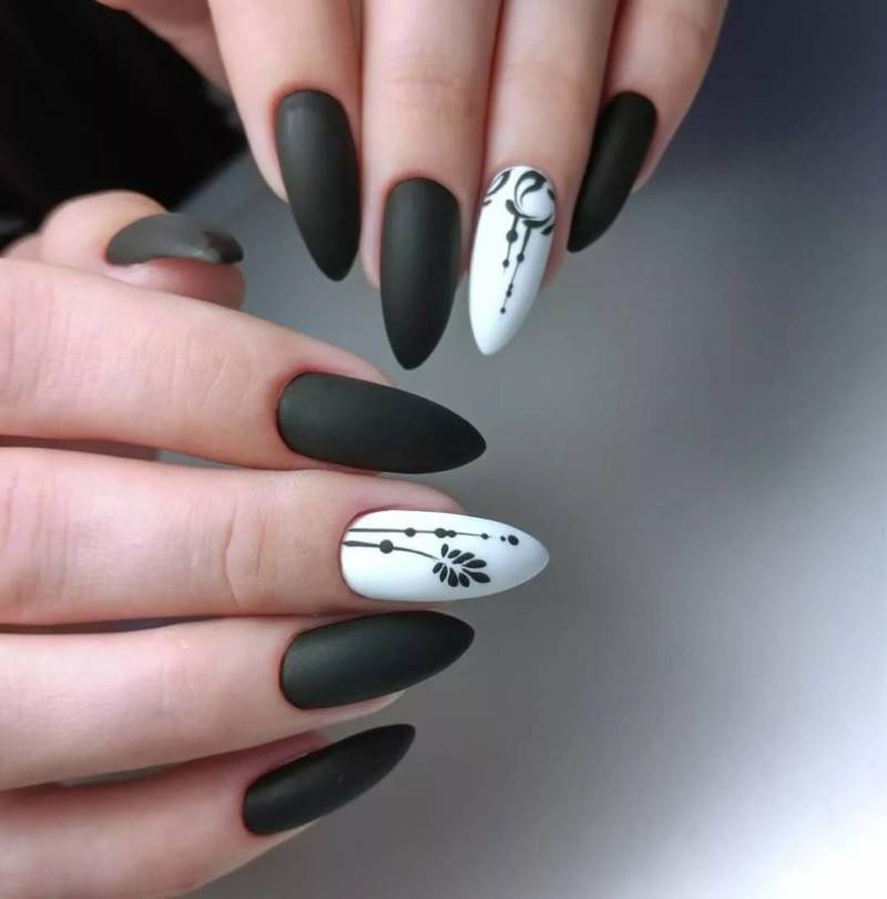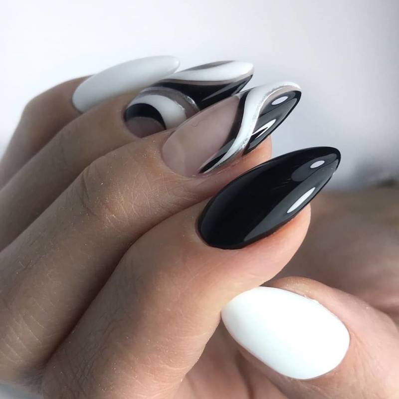Длинные черно-белые ногти: варианты маникюра, модного в сезоне 2023-2024