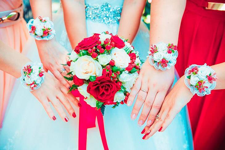 Свадебный красный маникюр давно перестал быть исключительно белым, как и платья невесты. Если платье имеет декор или само пошито из ткани красных оттенков, то свадебные ногти просто обязаны быть с акцентом, а дизайн – богатым и броским. Лучшее решение – золотые вензеля, обилие страз и блеска, но в стиле оформления платья, украшениями и обувью.