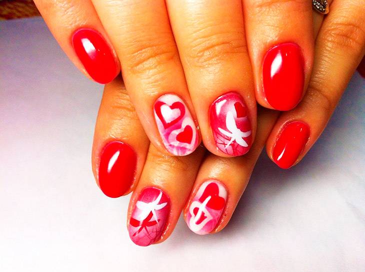 Ногти в стиле Купидона, которые можно сделать с изображением купидона или сердечек.
