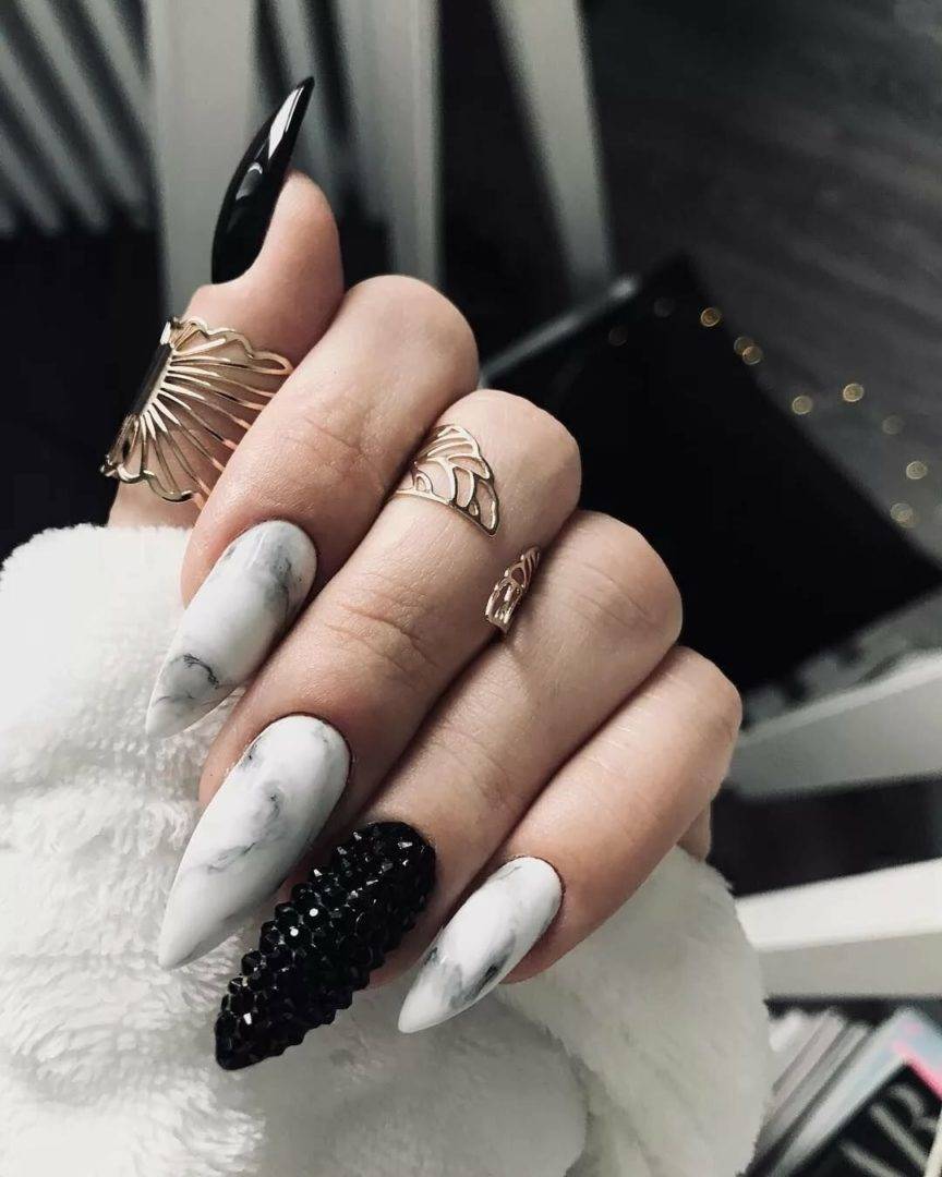 Длинные черно-белые ногти: варианты маникюра, модного в сезоне 2023-2024
