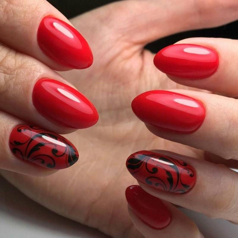 Невозможно найти девушку или женщину, отдающим предпочтение длинным ногтям, и ни разу не окрасившим ногти в оттенки красного цвета. Длинные ногти напрашиваются на маникюр в исполнении дизайна, основой которого является именно красный цвет! Форма ногтей может быть любая: квадратная, округлая или миндалевидная. Длинные ногтей сами по себе требуют постоянный контроль над поддержанием их формы.