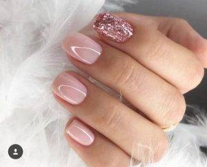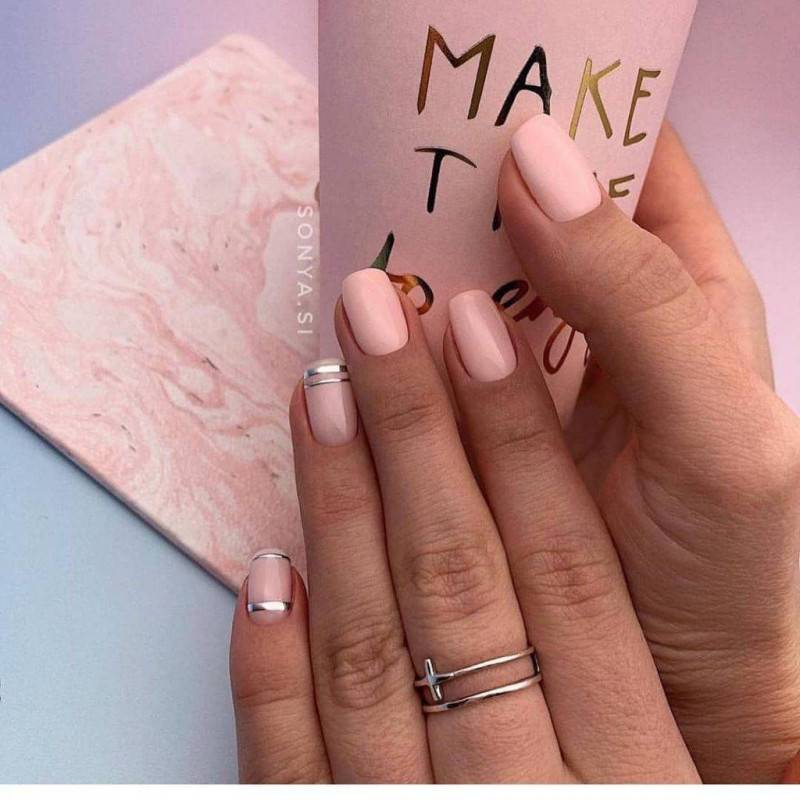 Если говорить о минимализме и нюдовом маникюре 2020-2021 то самым ярким примером дизайна здесь будут лаконичные металлизированные полоски. Подобный дизайн выглядит максимально минималистическим, при этом нюдовый маникюр сохраняет изящество и оригинальность.