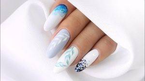 Важно! Стилисты советуют согласовывать маникюр на свадьбу с сезоном и выбирать теплые пастельные оттенки для летних и осенних праздников, льдистые прохладные тона с тематическим декором – для зимних, цветочные, солнечные, зеленые мотивы – для нежных весенних образов. Всесезонным считается белый, бежевый, блестящий миндальный маникюр с украшением кристаллами, орнаментами, романтичными надписями