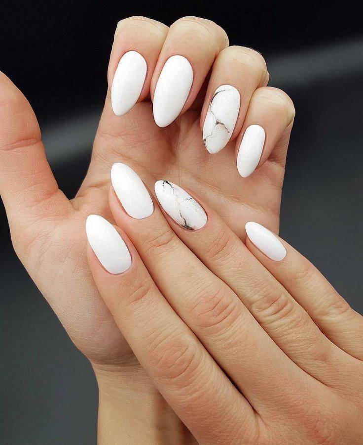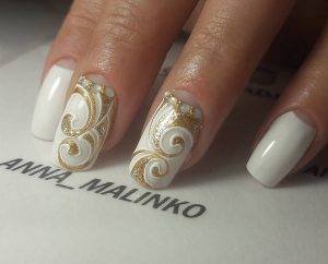 Если у вас белоснежное свадебное платье, белоснежный маникюр – ваш вариант. Он как ни один другой смотрится торжественно и дорого.