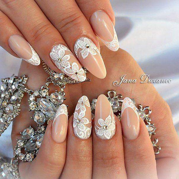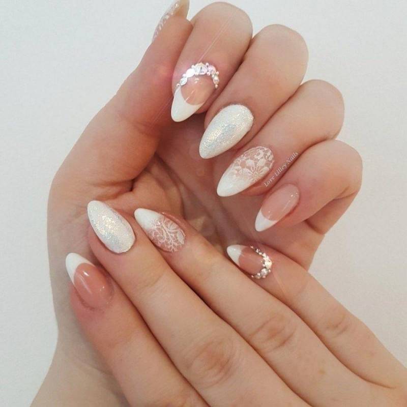свадебный маникюр для невесты миндальная форма