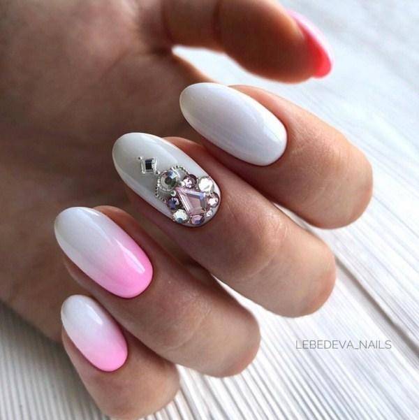 Нежный закругленный овал выигрышен для коротких и длинных ногтей, удобен в носке. Его украшают так же, как и миндаль, по своему вкусу и в соответствии с модными свадебными тенденциями.