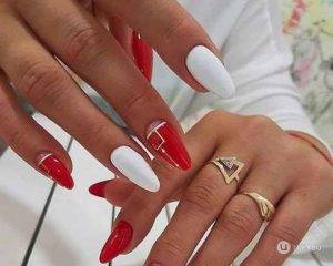 Они дополнят нежный свадебный образ в стилях классика, французский прованс, бохо, эко. Контрастные акценты синим, бордовым, золотым, стальным, алым допустимы в качестве окантовки овального короткого френча или декора на нейтральном фоне в виде миндаля. К такому оригинальному решению прибегают, когда в оформлении свадьбы используются два тона, на торжествах в стилистике лофта, готики, гламура.
