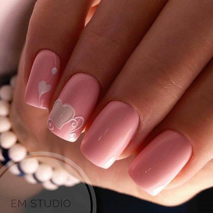 В начале нового нейл-сезона 2020-2021 года большую популярность в маникюре получили сердечки в самых неожиданных и оригинальных исполнениях. Поэтому в нюдовом маникюре изображения сердца или сердечек стало одним из самых трендовых. Советуем присмотреться к сердечному принту с дизайном крошечными бульонками на нюдовом покрытии.