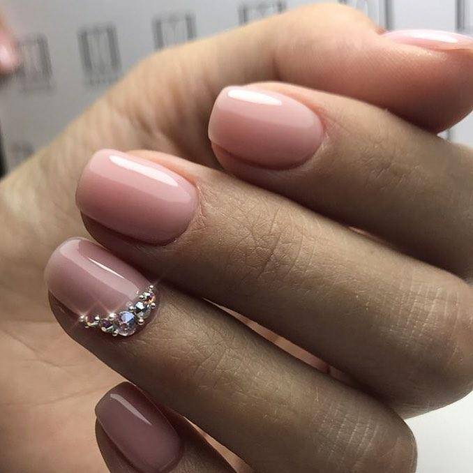 Если задача стоит наоборот не акцентировать внимание на маникюре, то конечно же стоит выбрать приглушённые розовые оттенки. Многие невесты хотят сделать акцент на обручальном кольце, чтобы на фото оно выделялось и маникюр не забирал на себя внимание