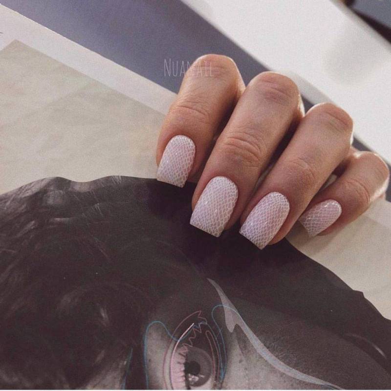 свадебный маникюр на квадратные ногти