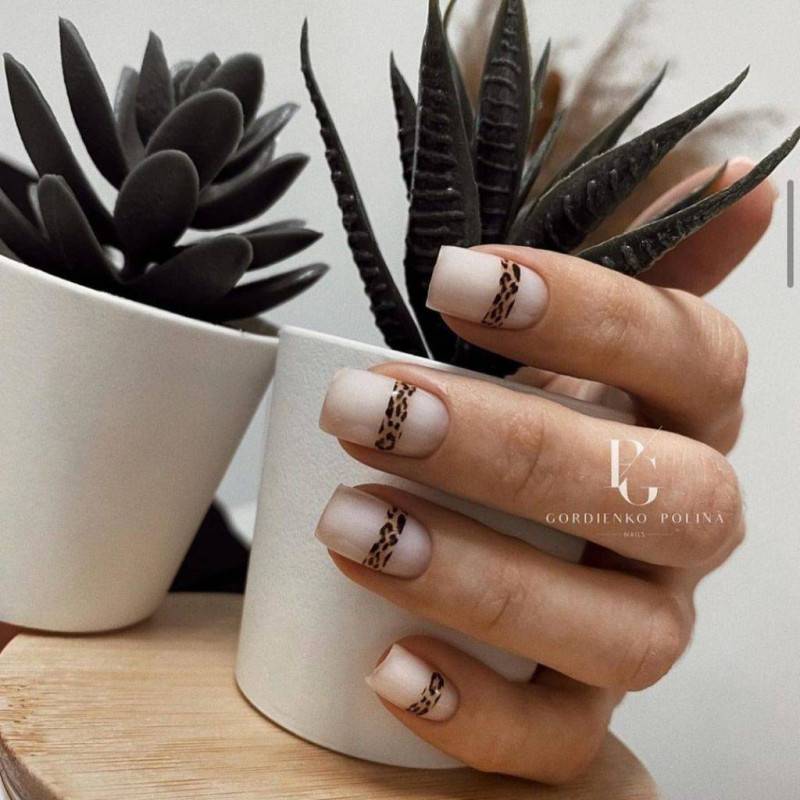 Один из самых популярных и культовых принтов, используемых в современном нейл-арт-дизайне однозначно стал идеальным решением для нюдового маникюра 2020-2021. Броский и смелый леопардовый принт и нежные тона нюда смотрятся непревзойденно и невероятно гармонично.