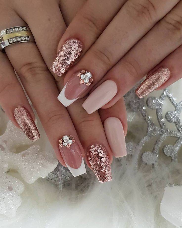 Специальный маникюр для вашего свадебного дня. Эти свадебные ногти для невест, очень просты в создании. Просто сделайте чистый розовый базовый цвет, омбре с добавлением серебряного блеска и финальное омбре с большим количеством блесток.