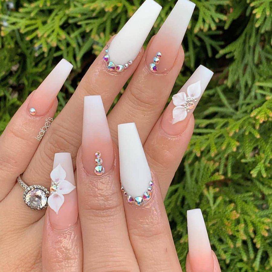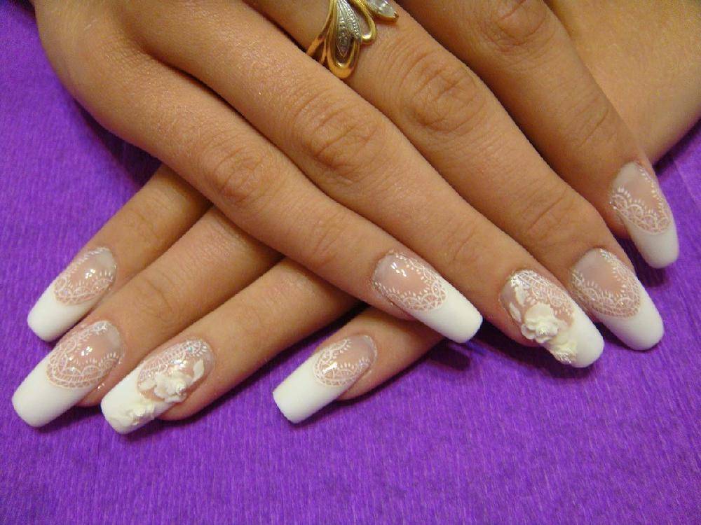 Нежный свадебный маникюр для длинных ногтей