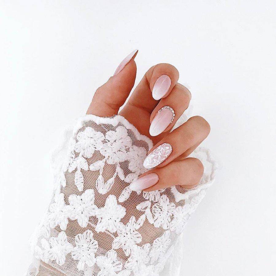 свадебный маникюр для невесты миндальная форма