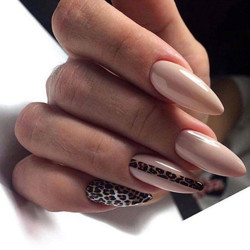 Один из самых популярных и культовых принтов, используемых в современном нейл-арт-дизайне однозначно стал идеальным решением для нюдового маникюра 2020-2021. Броский и смелый леопардовый принт и нежные тона нюда смотрятся непревзойденно и невероятно гармонично.