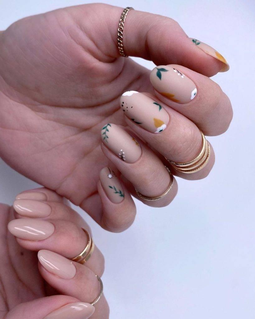 Помимо хищных принтов и строгой геометрии, в модном нюдовом маникюре 2020-2021 нашлось место нежным и красивым цветочным узорам. В этом сезоне в тренде нежнейшие рисунки в стиле акварельных капель.