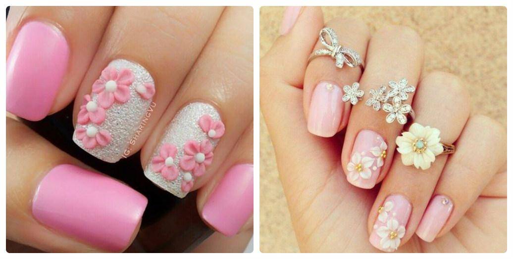 Цветочные рисунки наносятся специальными тонкими кистями и гелевой краской, можно использовать стемпинг или выбрать наклейки. Для любителей более сложных техник подойдут объемные цветы в технике лепки или вязаный маникюр с цветочным узором. Утонченно и женственно смотрится мелкий цветочный и цветочный принт; с ролью эффектного акцента прекрасно справится крупный узор из одиночного цветка.