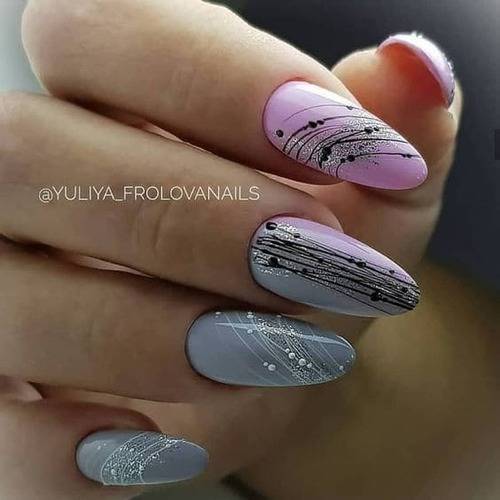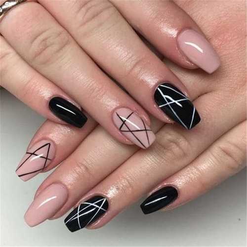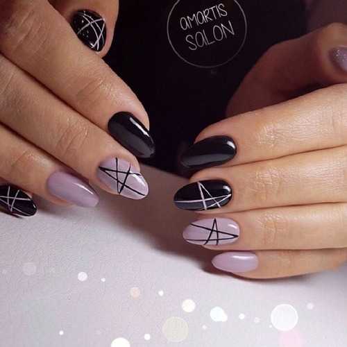 Очень стильно выглядят черные линии на светлых пастельных оттенках, например, мятном, розовом, лиловом или голубом.