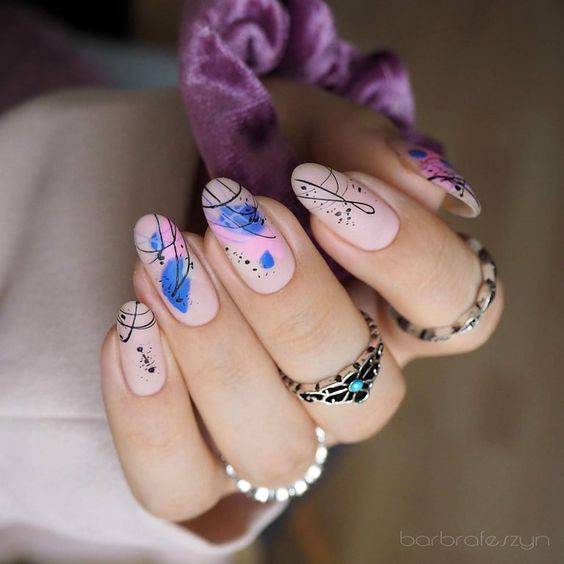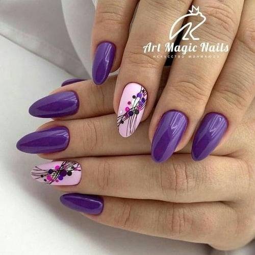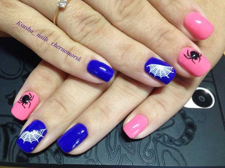 Паук на ногтях дизайн фото в розово синем цвете.