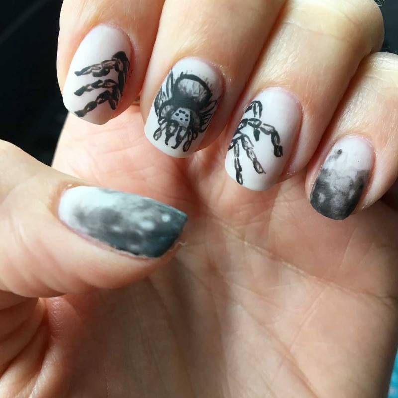 Дымчатый маникюр с пауком.