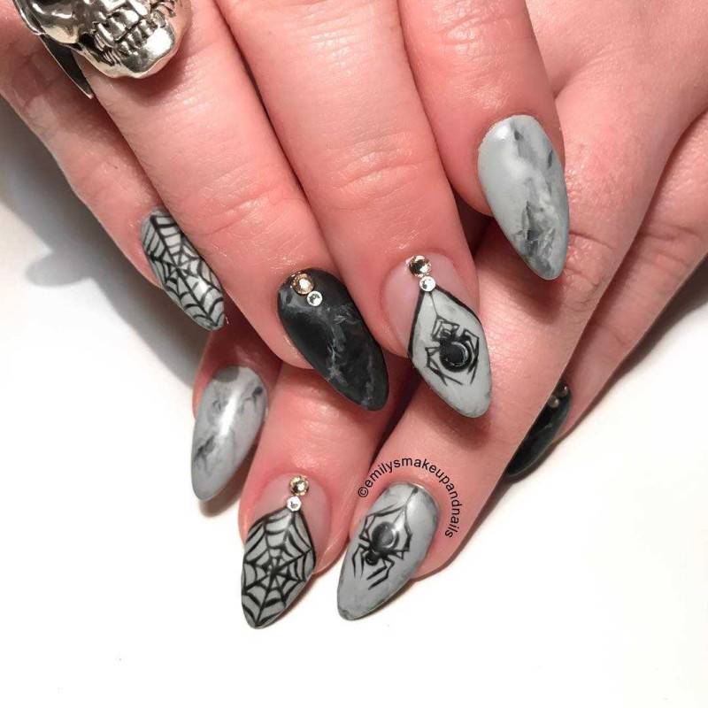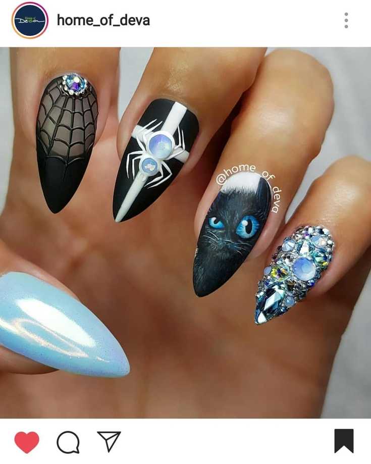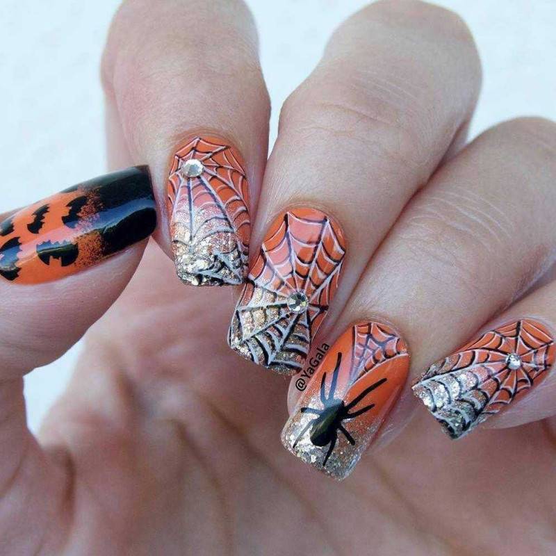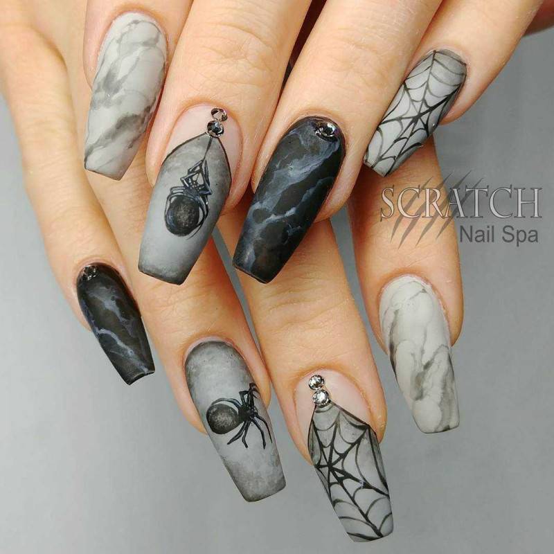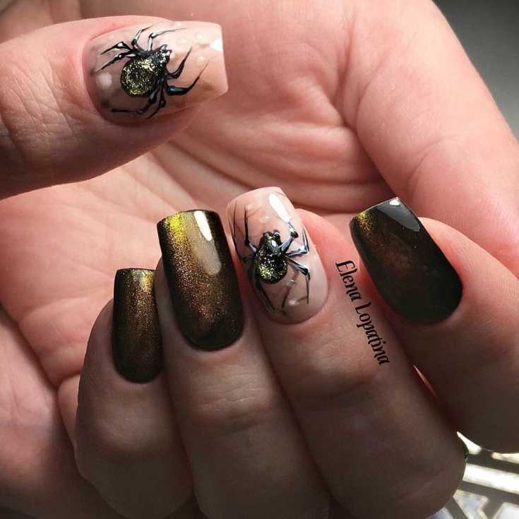 2020 Дизайн ногтей с пауками маникюр на хеллоуин 66 фото