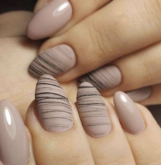 Тот случай, когда цвет не бросается в глаза: лаконично и элегантно. То, что нужно для красивой леди. А нюдовый маникюр с паутинкой в матовом топе подчеркнет нежность его обладательницы.