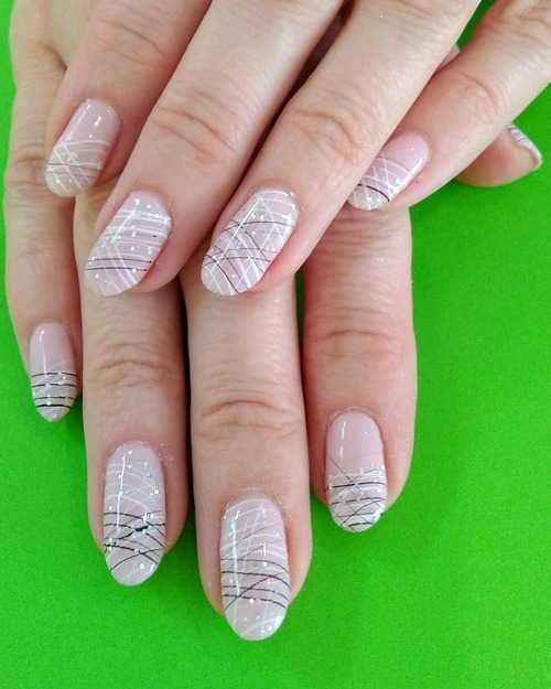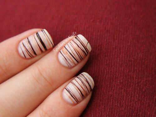 Чаще всего на коротких ногтях рисуют параллельные линии: горизонтальные, вертикальные, полукруглые или диагональные. Но и скрещивание, напоминающее паутину, также распространено.