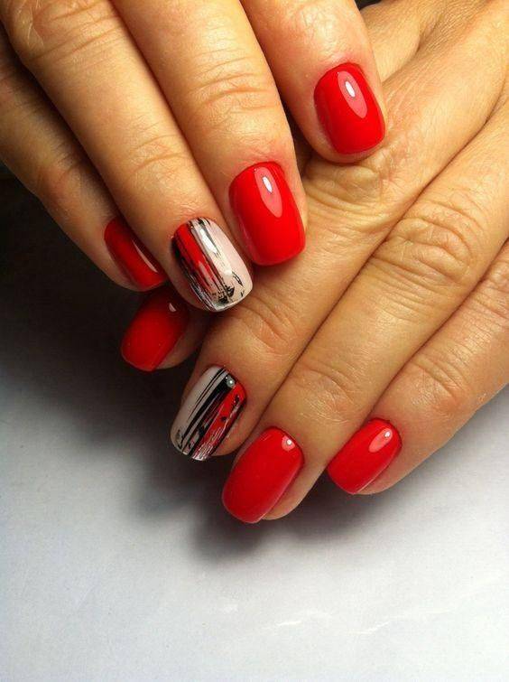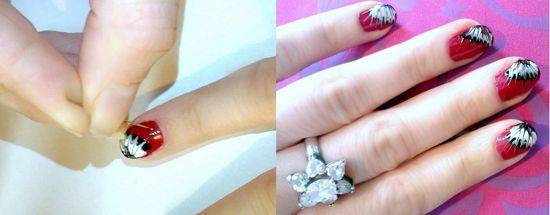 Теперь можно приступать к рисунку, для этого понадобятся два или три контрастных лака. Я выбрала красный