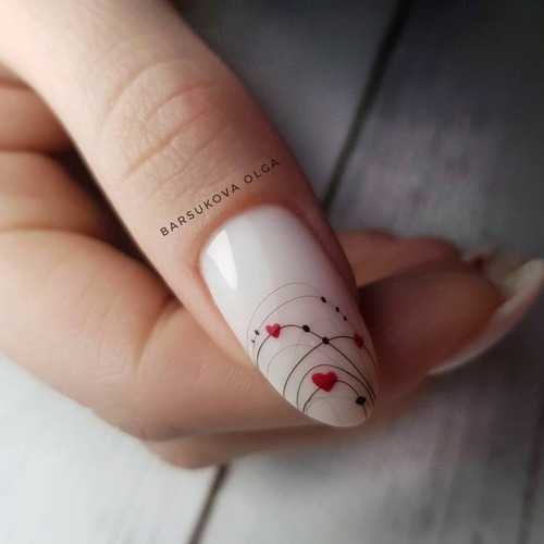Этот оттенок всегда будет актуальным. Но нанесение такого лака требует определённого навыка, поскольку создать идеальную поверхность нежного цвета достаточно сложно: густой лак плохо выравнивается, а жидкий заплывает под кутикулу. Поэтому для нанесения лучше брать лак средней консистенции и наносить его в три слоя. Ровная светлая поверхность сочетается с паутинкой любого оттенка.