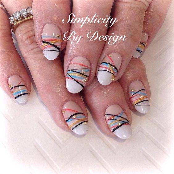 Создавайте разноцветные паутинки на ногтях, дизайн которых смотрится очень непосредственно и индивидуально.
