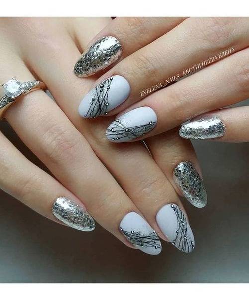 Красивый дизайн ногтей паутинка прекрасен на матовых и глянцевых поверхностях, оригинальных сочетаниях с глиттерными и пудровыми ноготками.