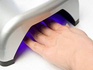 После покрытия ногтей акрилом их следует сушить в UF-лампе в течение 2 – 3 мин.