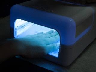 После покрытия ногтей акрилом их следует сушить в UF-лампе в течение 2 – 3 мин.