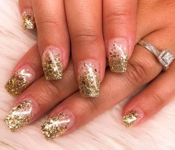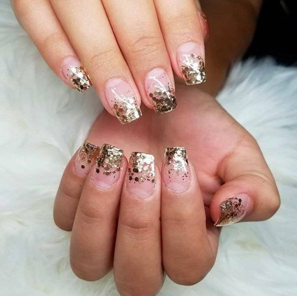 Попробуйте эти удивительные идеи ногтей с золотым блеском и блестками. Просто покройте золотистыми блестками бежевый или светло-кофейный лак по всей ногтевой пластины, или на одну ее треть, и получите изумительный результат. Для нейл-арта с золотыми кончиками ногтей хороша серо-кофейная, бежевая, бежево-розовая, розовая основа. Обязательно попробуйте такие варианты.
