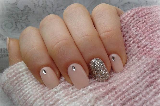 Для создания запоминающейся картины рекомендуется покрыть один ноготь большим количеством сияющих камешков. Но если применить этот способ на всех пальцах, то общее впечатление будет испорчено.